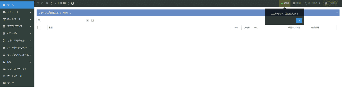 サーバのIPアドレスにuiを付けたURLにアクセスすると、ダッシュボード画面が表示されます。