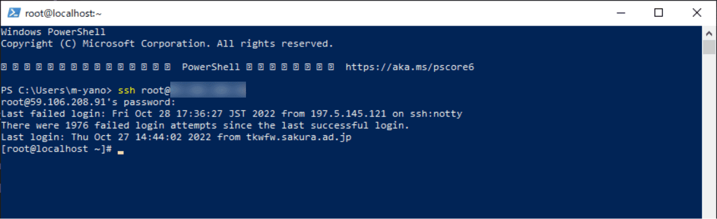 - ssh root@***,***,***,*** ←作成したNode-REDサーバのIPアドレスを入力