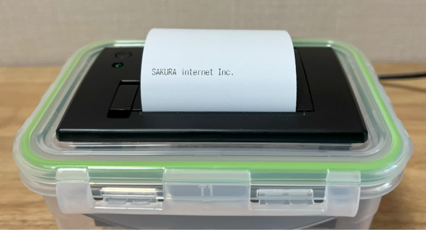 スケッチを書き込み、電源を投入することで自動的に画像ダウンロードと印刷が開始されます。(電源投入時は、動作確認としてさくらインターネットのロゴが印刷されます)