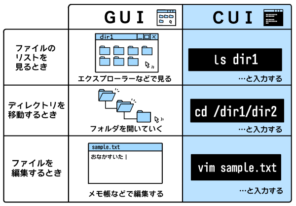 SSHクライアントを使ってサーバーに接続できたら、そこから先はCUI(Command Line Interface)の世界です。分かりやすい絵やアイコンがあるわけではなく、すべて英数字や記号だけで表現される世界です。