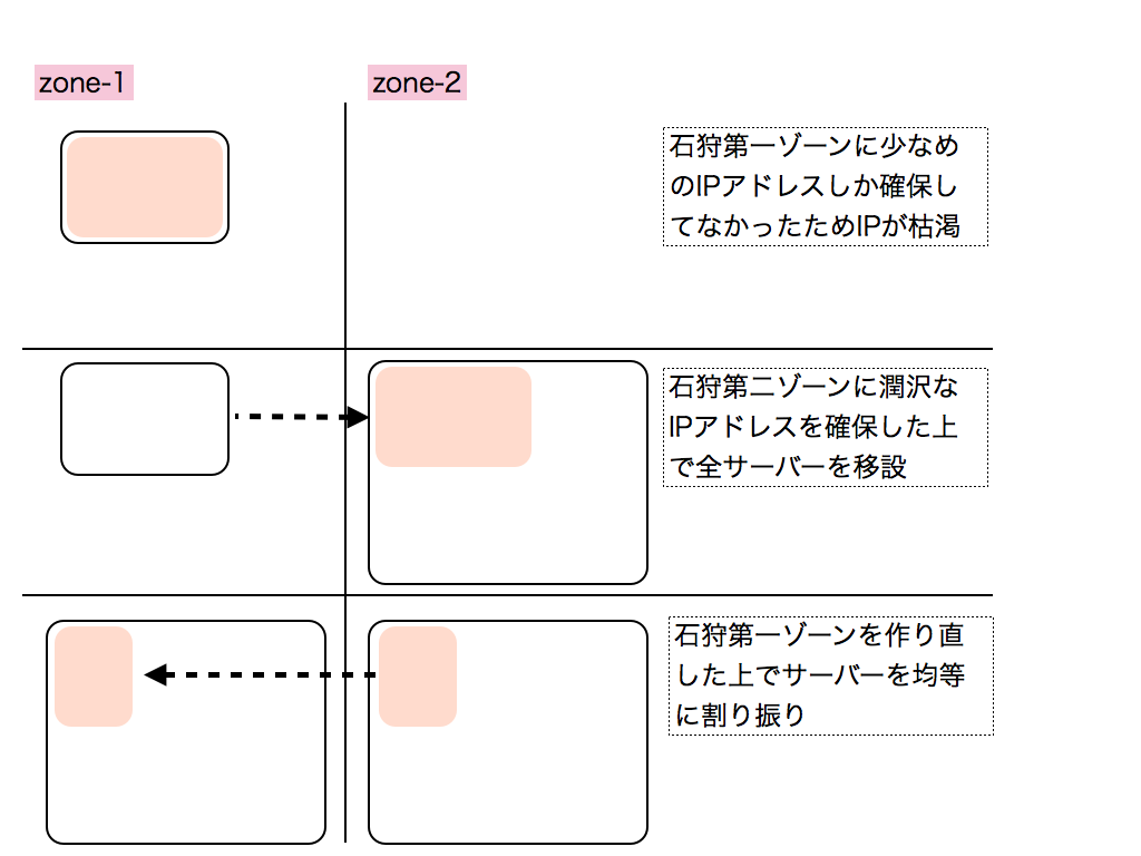 エッジサーバーのトラフィック自体も順調にかつ急速に増加したため適宜サーバー数の調整を行っていたのですが、当初構築したスイッチの構成ではIPアドレスが枯渇してしまいました。そのため当時置かれていた石狩第一ゾーンのサーバー群を止めずに、並行して石狩第二ゾーンにスイッチを最適化した構成を構築し、サーバー群をそちらに全て移し替える、という作業を行いました。