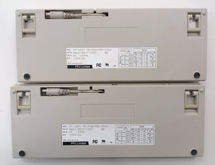 職場で使っていた方は、日焼けして変色してしまっていますが、元々は両方とも同じ真っ白な色でした。また職場PCにつないでいたので、その識別用にシリアルナンバーが貼ってあります。
