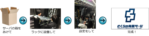 下記の流れでサーバーを構築していくのですが、スタッフが行う作業はこれだけではありません。