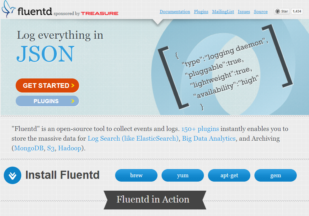fluentdではログの内容(レコード)がJSON形式になっている。そのため、アプリケーション側でのパースが容易であるというメリットがある。最近ではMongoDBなどのJSON形式をネイティブで扱えるデータベースも登場しており、これらと組み合わせることでデータの解析などがやりやすくなる。