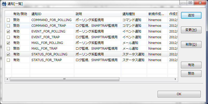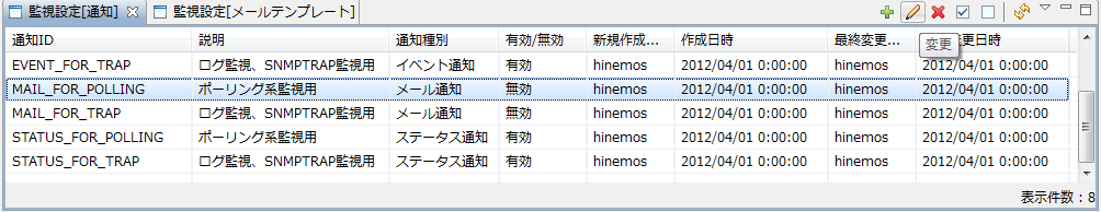 Hinemosクライアントの「監視」パースペクティブ内「管理[ステータス]ビューに通知を表示する