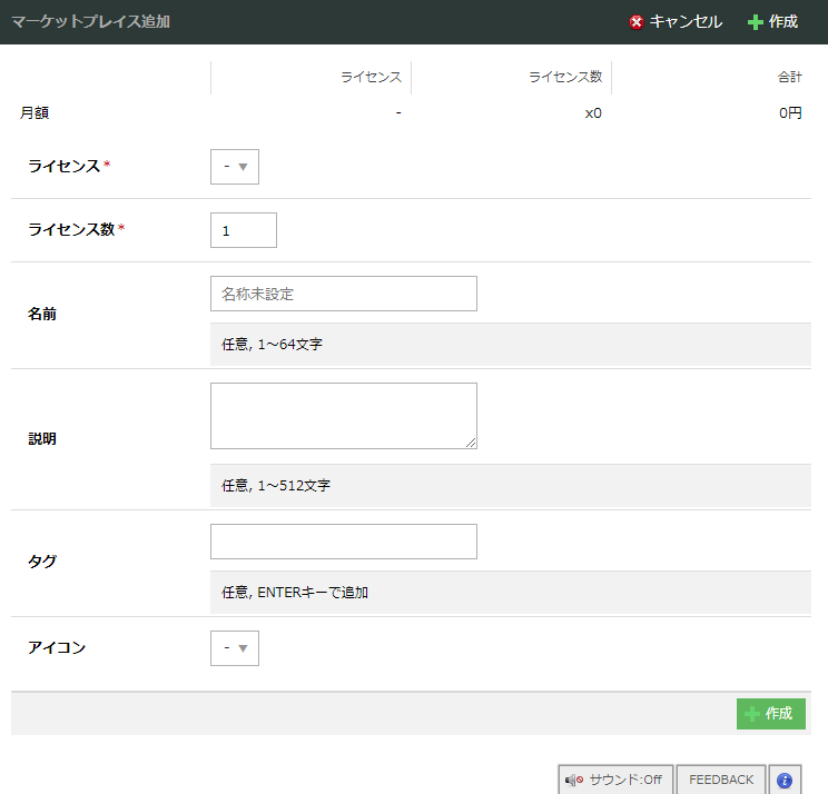 マーケットプレイスの料金体系は、サービスサイト、サービスプラン名に表記のうえ提供されます。ご利用前に料金をご確認ください。