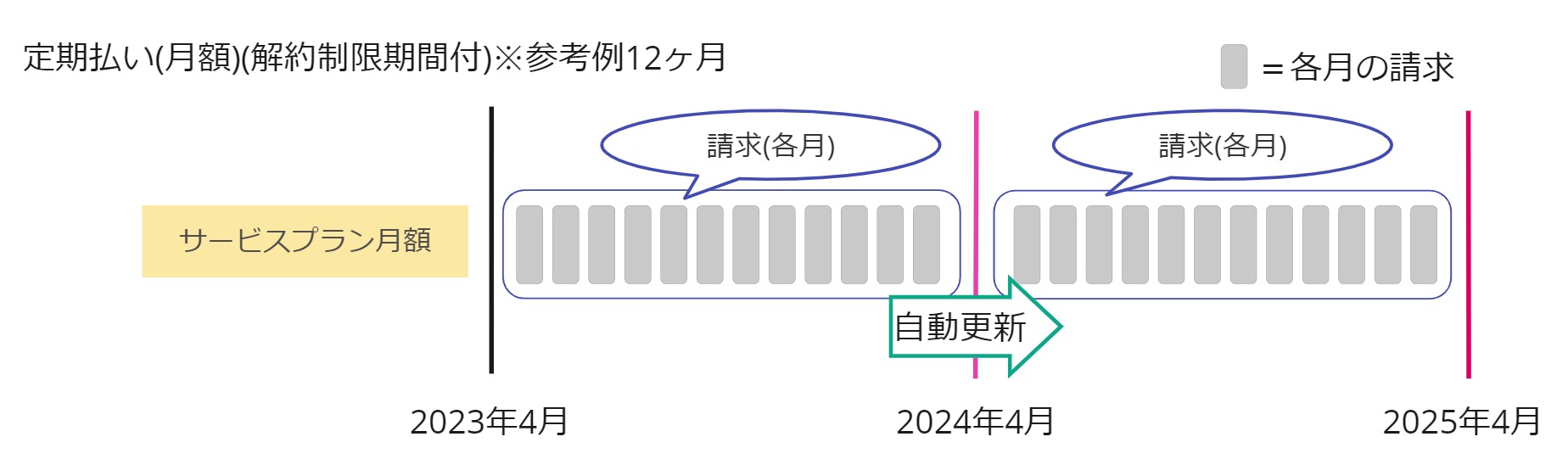 定期払いは、月毎に支払が発生するサービスに関する請求方法です。