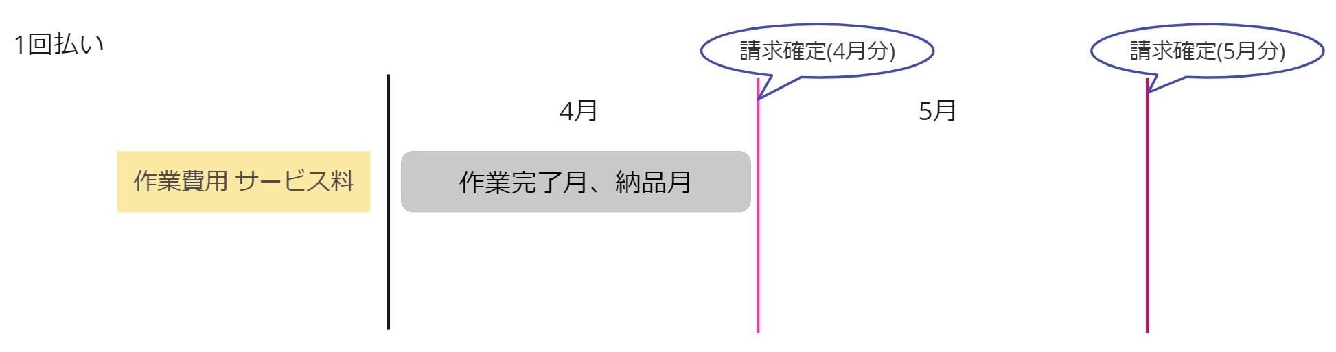 1回払いは、作業に対する料金請求、または履行義務の伴わないサービスに関する請求方法です。