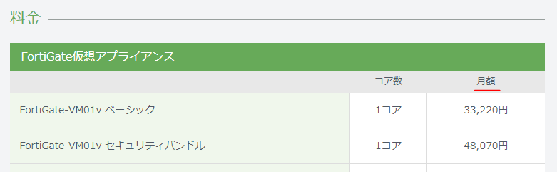 料金に関して料金テーブルに 月額 などが表記されます。