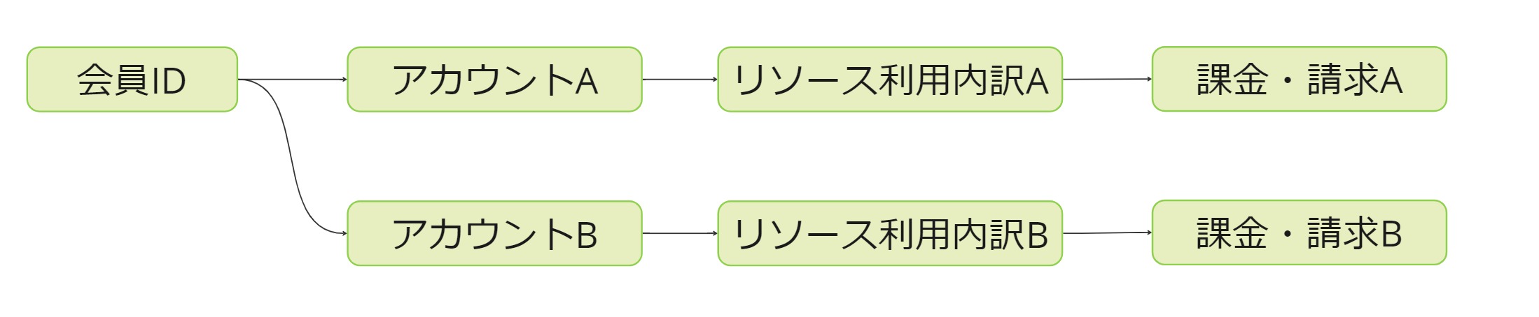 アカウントAに於いて、基本料のあるサービスを利用中。アカウントBに於いて利用開始する際は、再度基本料が必要となります。