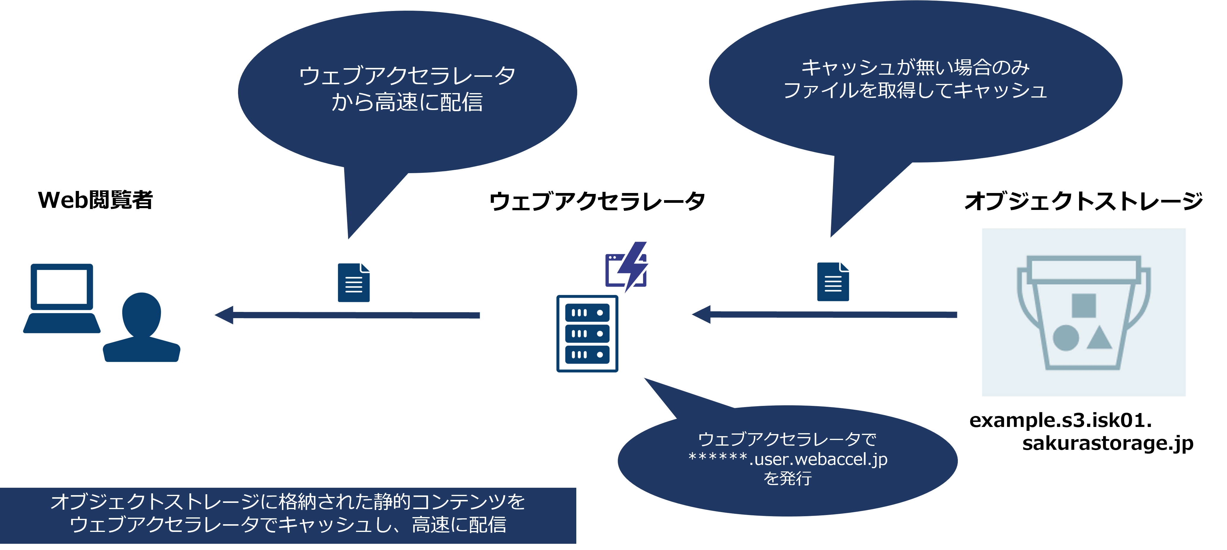 ウェブアクセラレータでキャッシュ配信するオブジェクトストレージは ******.user.webaccel.jp のドメインから配信されます。