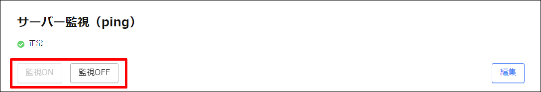 サーバー監視の「監視ON」または「監視OFF」をクリックすることで設定ができます。