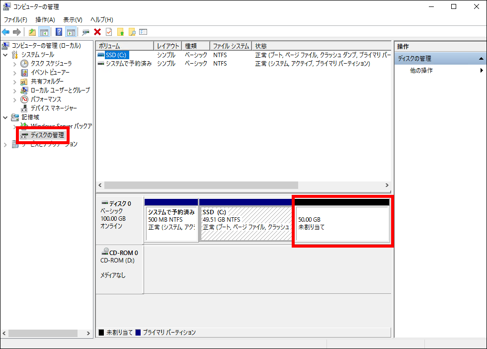 「ディスクの管理」や「エクスプローラー」で、ボリュームが正常に拡張されていることを確認します。