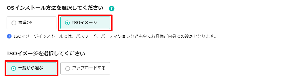 ご自身でISOイメージのアップロードをしてインストールした場合や、パブリックISOインストールを行った場合は適宜変更をお願いいたします。