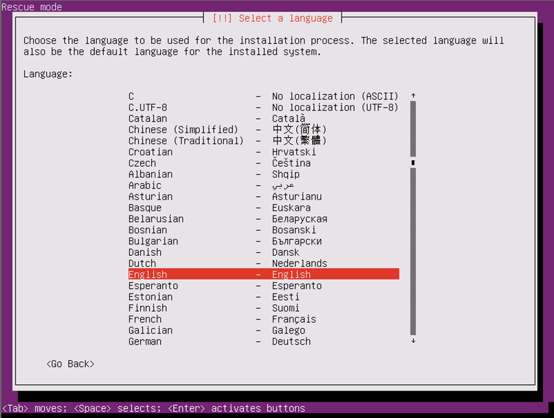 レスキューブートを実施する際の言語を選択します。