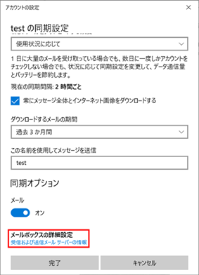 7. アカウントの設定画面で「メールボックスの同期設定を変更」をクリックします。