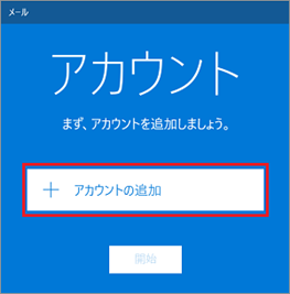 1. スタート画面内のアプリ一覧からWindows 10・11の標準メーラー「メール」を起動します。スタートアップ画面が表示された場合は「使ってみる」をクリックし、「アカウントの追加」をクリックします。