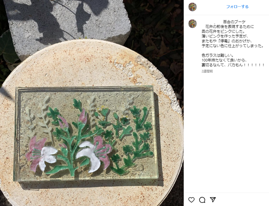 ほかの投稿も、似たようなものだった。丹念に読んでくれる人は文意を理解してくれるだろうが、普通の読者は無理である。そして Instagram には、これが墓石の前に置かれる手作りのガラス板であると一切書かれていない。つまり、何がなんだかわからない。