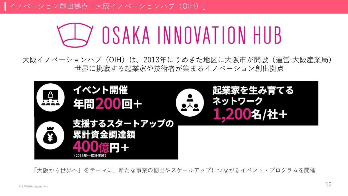 2013年に大阪市が開設したイノベーション創出拠点、大阪イノベーションハブが完成し、イベントを開催したり、ネットワーキングを広げる中で、さまざまな関係者が協力し、1つの目標に向かって共同で進んでいくようになりました。