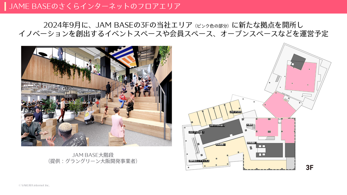 2024年9月に、JAM BASEの3Fに進出する予定です。JAM BASEは、さまざまな用途や機能を“ごちゃごちゃ”に混ぜ合わせた配置になっており、壁のないオープンスペースが特徴です。