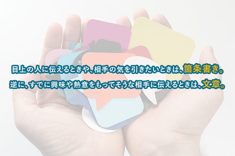目上の人に伝えるときや、相手の気を引きたいときは、箇条書き。