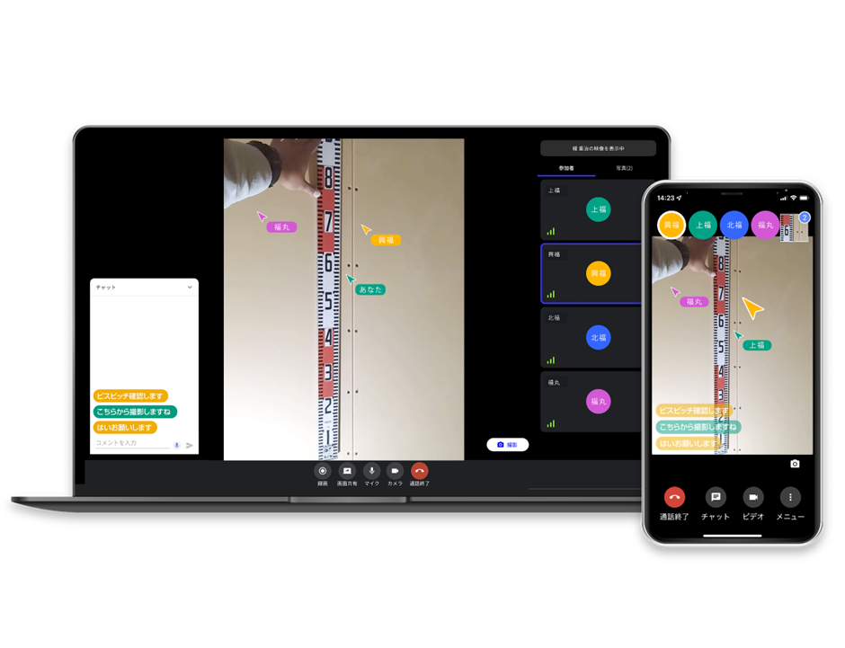 SynQ Remoteがほかのリモートコラボレーションツールと一線を画す点は、画面上で細かな部分まで確認できる画質のよさと、シンプルな操作性だ。アプリのインストール等は一切不要で、普段使っているスマートフォンやパソコンで簡単に使用できるほか、ビデオ通話時の画面ではメジャーの目盛や、対象物の細かな質感まで確認できる。