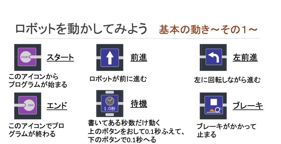 Palette IDEは、「直進」や「左折」などのコマンドを意味するブロックを順番に並べることで、視覚的にプログラミングができます。