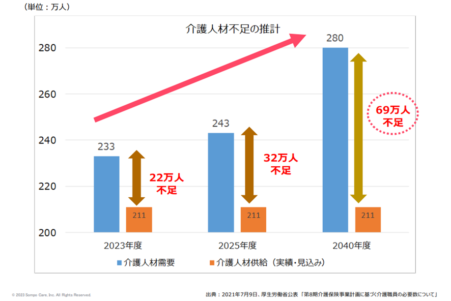 同社が「未来の介護」を推し進める背景には、厚生労働省が2021年に発表した「2040年問題」があった。