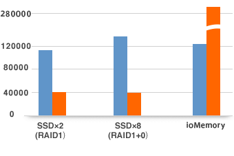 ※ioMemoryはエクスプレスG2シリーズ Fujitsu PRIMERGY RX200 S8モデルのモデルの Xeon E5-2650v2 2CPUにて計測