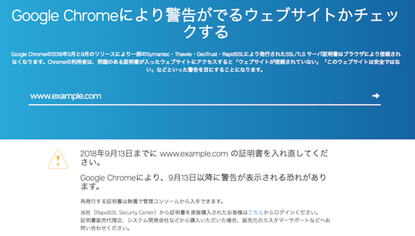 この”最終的な提案”により、特定の期間に発行された旧シマンテック社のSSL証明書の失効対応がChromeブラウザにて段階的に実施されている状況です。10月にリリースされるChrome70では、該当するSSL証明書を利用しているサイトにアクセスした場合、エラーが表示されてサイトが閲覧できなくなります。