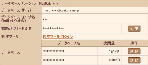 - データベースサーバ:mysql***.db.sakura.ne.jp