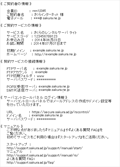 メールソフトやFTPソフトの設定に必要な情報が記載されています。大切に保管しましょう。