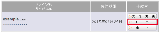 • 転出希望のドメインの支払い方法が「クレジット払い」の場合、更新月の25日頃にクレジット決済を行っています。