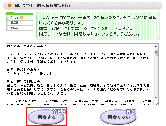 [ 個人情報に関する公表事項 ]の内容をご確認の上、ご理解いただいた場合は