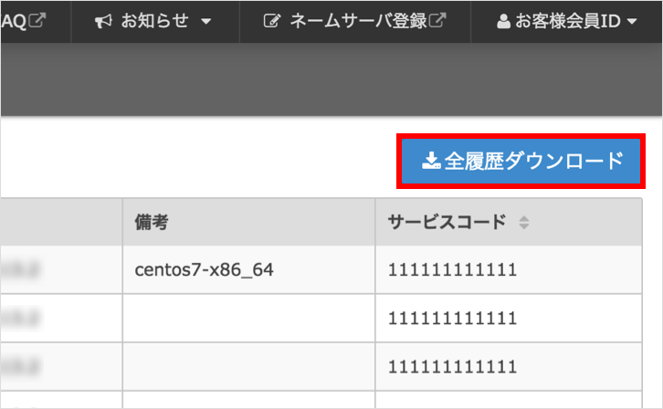 「操作履歴」ページにて「全履歴ダウンロード」ボタンをクリックすることで、