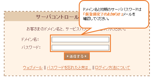 サーバコントロールパネルのログイン画面を表示します。