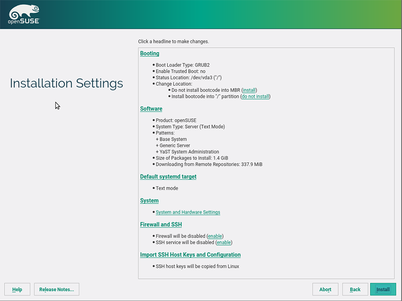 - openSUSEの詳細インストール手順またOSのセットアップは公式ドキュメントをご参考ください。