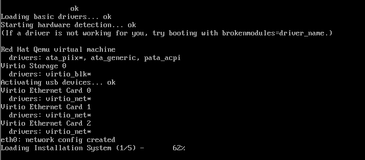 - 仮想マシンにネットワークインストール用のOSインストールCD-ROMのマウントが行われたのち、CD-ROMからのブートにてOSインス トーラの起動を行います。