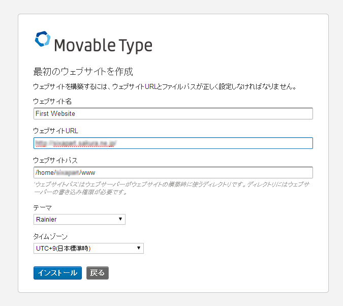 インストールする前に、Movable Typeのインストールパスと、公開するブログのパスを決めましょう。Movable Typeは