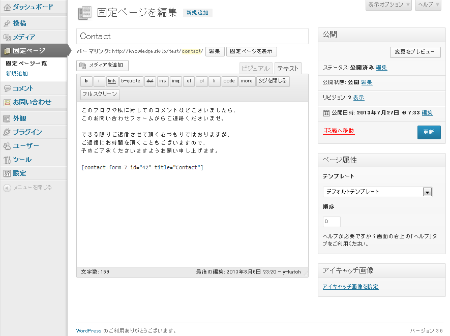 それでは、早速固定ページにお問い合わせフォームを作成してみましょう。