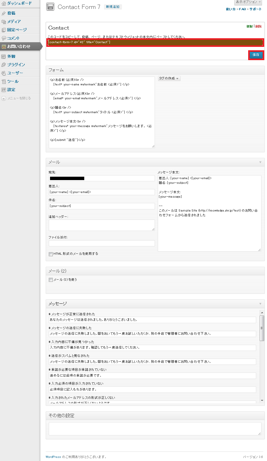 - もっと詳しいContact Form 7の使い方は、公式サイト:Contact Form 7 使い方をご参照下さいませ。