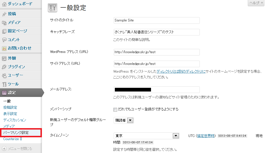 では次に、個々の記事毎に割り当てられるURL(パーマリンク)を設定しましょう。