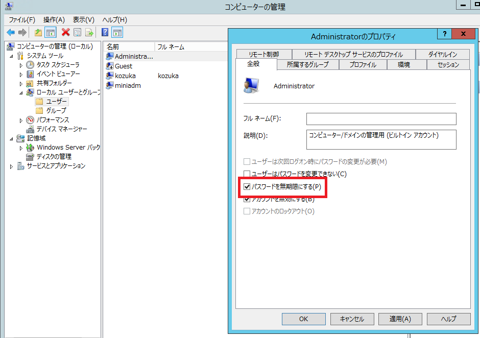 また、可能であれば新しく管理者アカウントを作ってadministratorアカウントを無効にすることを検討してください。