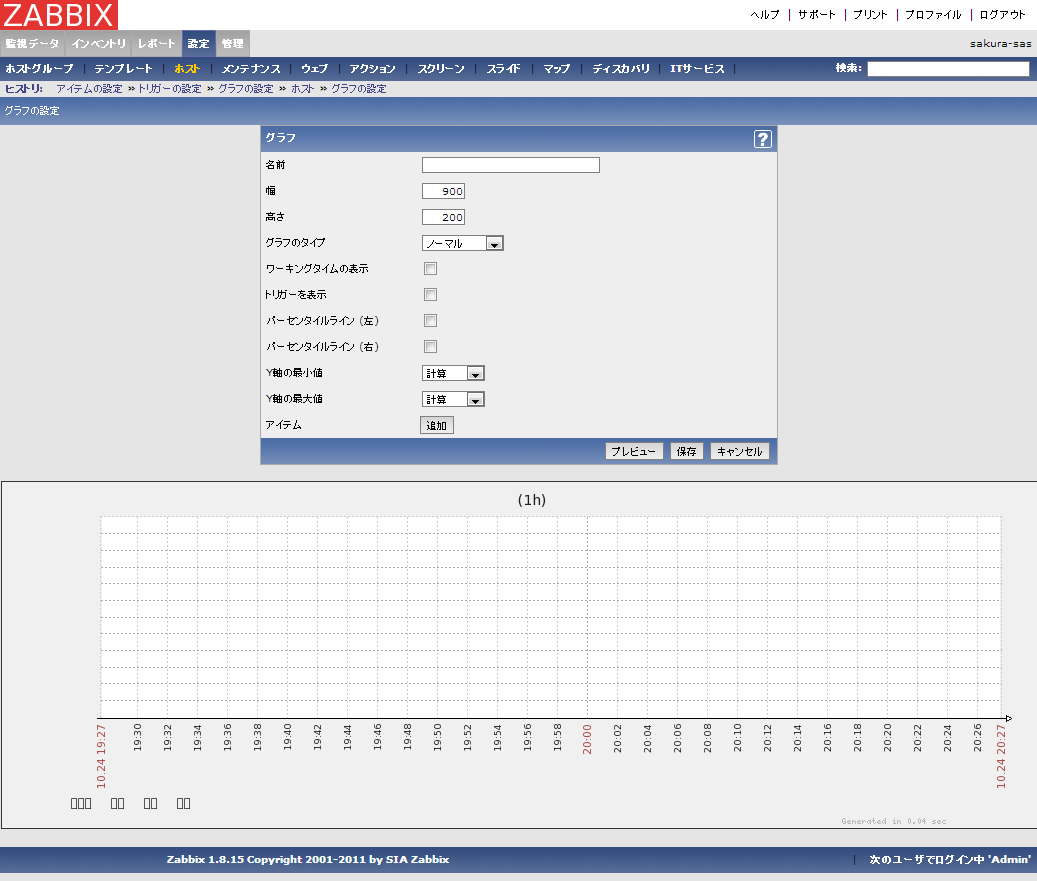 最後に「保存」をクリックするとグラフ設定が保存される。作成したグラフは、メニュー内の「監視データ」、「グラフ」を順にクリックすると表示できる(図26)。