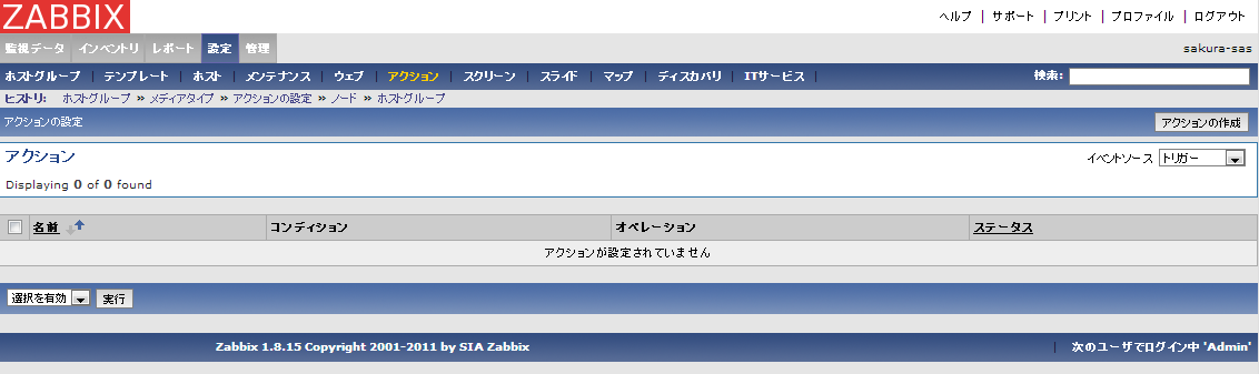 以上でメールで通知を送信する設定は完了だ。続いてメニュー内の「設定」、「アクション」を順にクリックし、「アクションの設定」画面を表示させる(図31)。