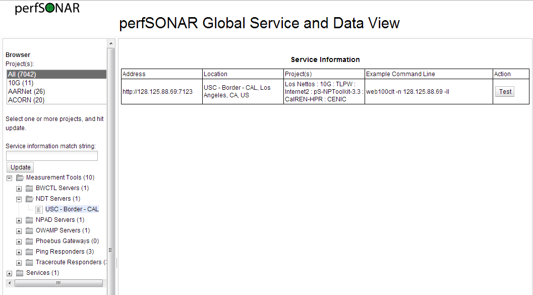 web100cltコマンドでテストを実行するには、「-n」オプションに続けてNDTサーバーを指定する。NDTサーバーはNDTのWebサイトに一覧が掲載されているほか、perfSONARというWebページからも検索できる(図2)。
