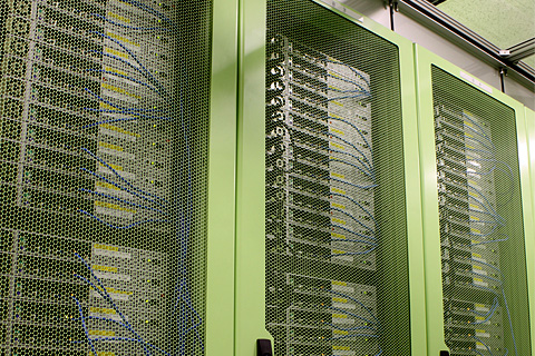 また、ラックを増設した堂島データセンターのホスティング専用フロアでは、ラックの前後列通路を両方ともに覆い、冷気を囲い込むアイルキャッピング(※1)と、高開口率で通風性に優れたデータセンター専用ラックを採用し、自社開発の省スペース・省電力サーバを利用することで、空調効率の改善と1ラック当たり最大160台ものサーバを収容し、省エネルギーとデータセンタースペースの有効活用を図っております。