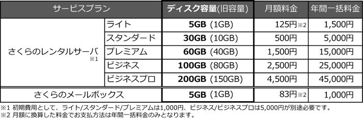 ■ 各プランのディスク容量と料金(新規のお客様だけでなく既存のお客様もディスク容量を増強いたします。)
