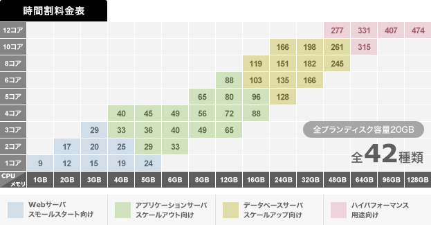 これまでは、20日未満の利用の場合は日割料金での精算となり、20日の時点で月額料金が適用される料金体系でしたが、「いろんな構成を試してみたい」「もっと手軽に使いたい」というお客様の声にお応えし、1時間9円からの時間割料金を導入いたします。