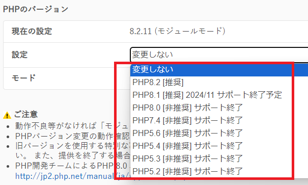 PHPの古いバージョンの提供終了